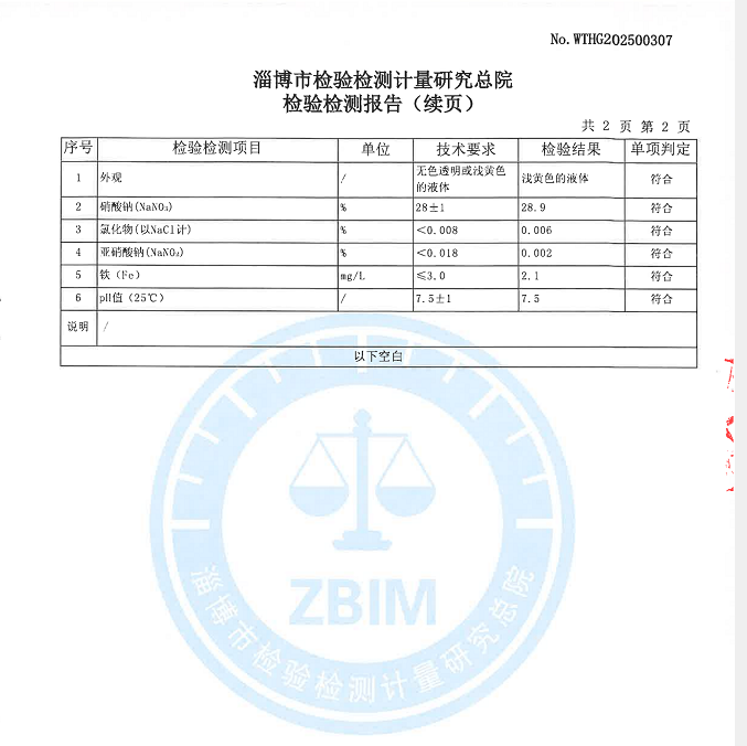 1. 浓度精准:严格控制硝酸钠浓度为28%,保证产品质量稳定和使用效果的一致性,满足不同用户的生产和实验需求(也可根据用户需求定制生产不同浓度要求的产品)。